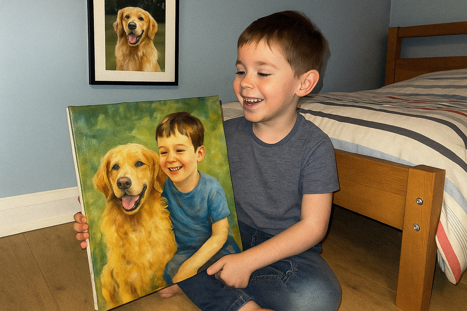 "This painting captures my son’s bond with our dog so perfectly. It's more than a memory—it’s a piece of our hearts."