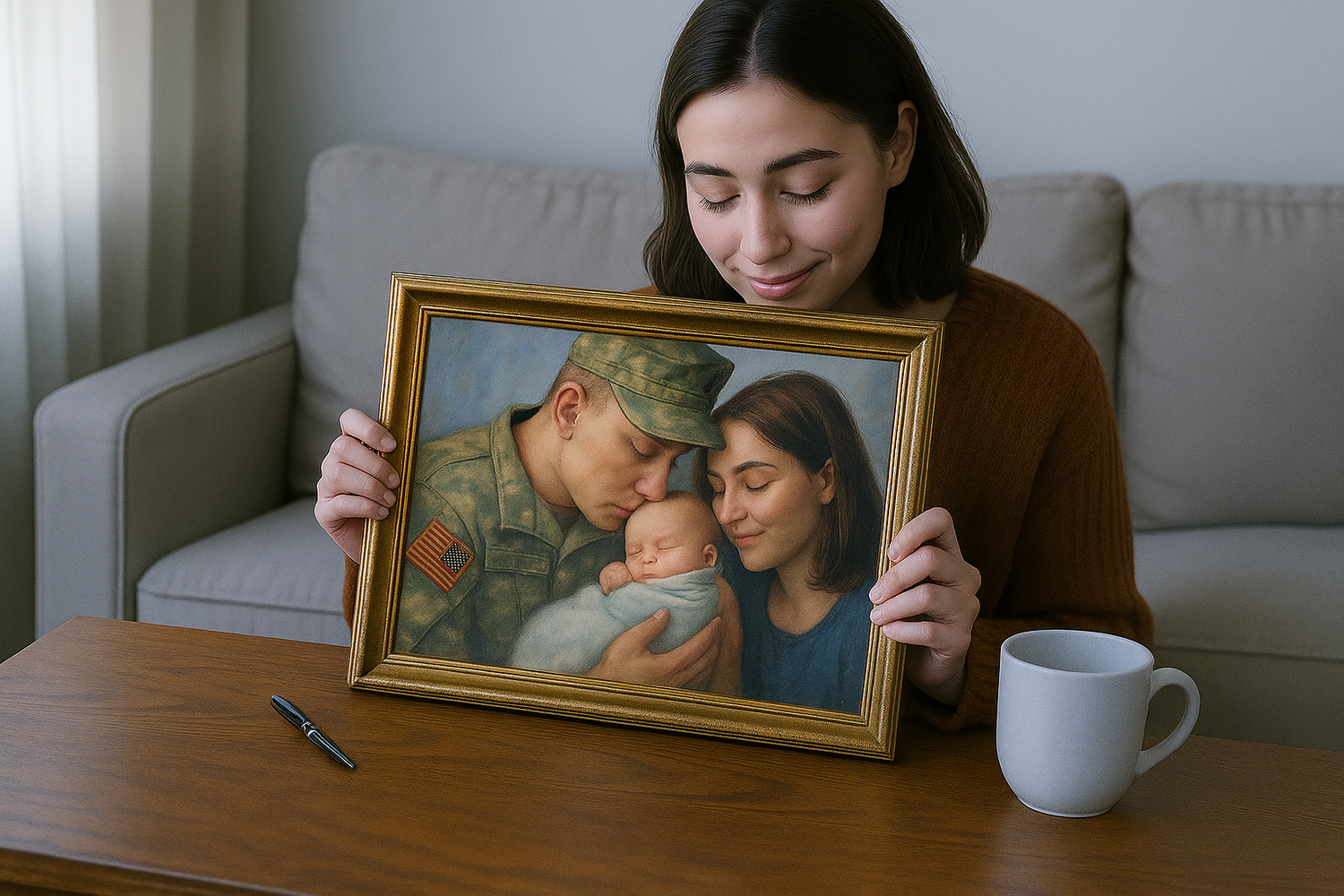 "My husband missed our baby’s birth while deployed, and it broke our hearts. Paintedforever combined our photos into the moment we never got—our first day as a family. Now it hangs in our home as a reminder that love keeps us close, even when we're far apart."